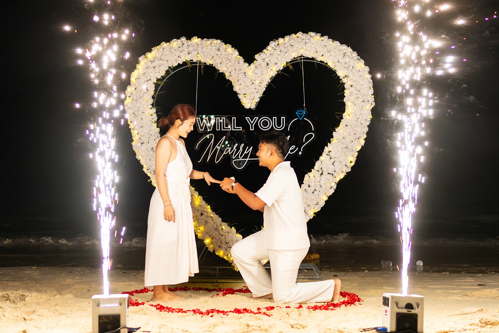 Additionally, you can order musical accompaniment (cellist or saxophonist), fireworks, a photographer, and the inscription «Will you Marry Me»